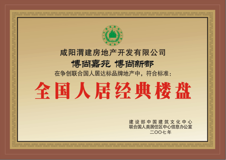 博尚嘉苑 博尚新都在爭創(chuàng)聯(lián)合國人居達標(biāo)品牌地產(chǎn)中獲“全國人居經(jīng)典樓盤
